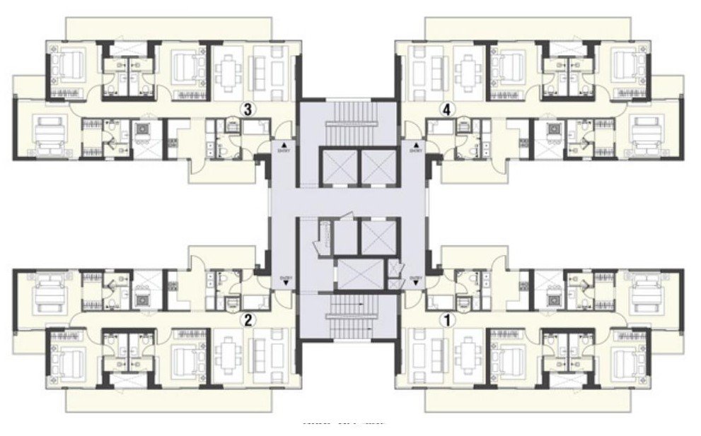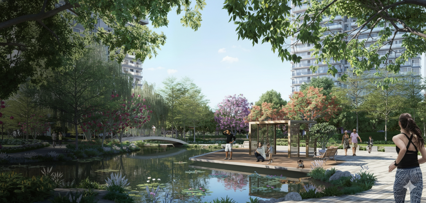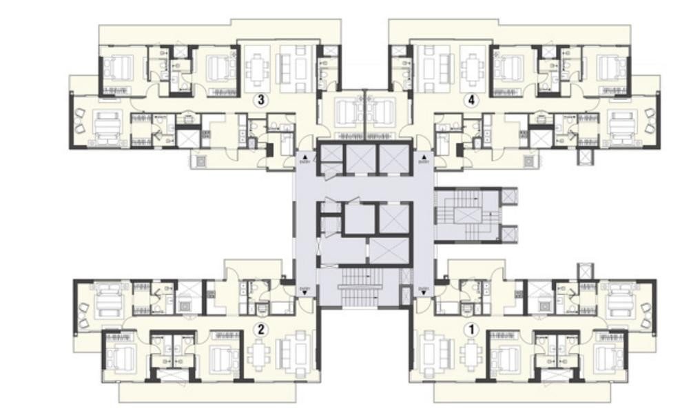 Spread across 26 acres of lush, landscaped greens, this premium residential development features 13 iconic towers, each rising 34 floors high with only four contemporary apartments per floor for utmost privacy and space.